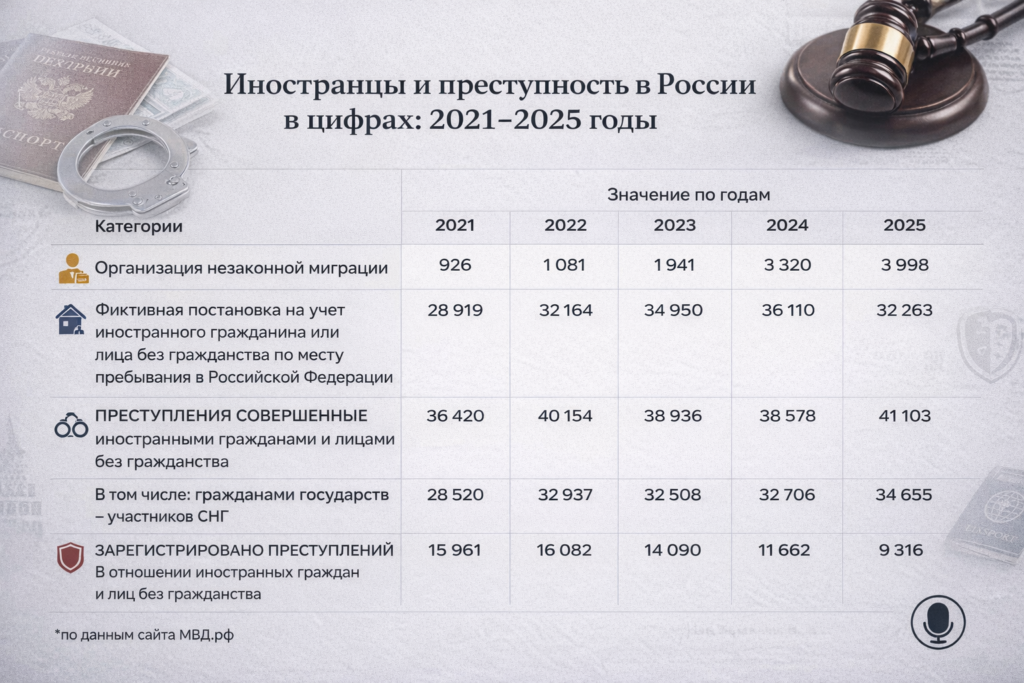 Рост на 331%, десятки тысяч фиктивных регистраций и новые рекорды. Полная статистика преступности среди мигрантов в России за 2021–2025 годы.